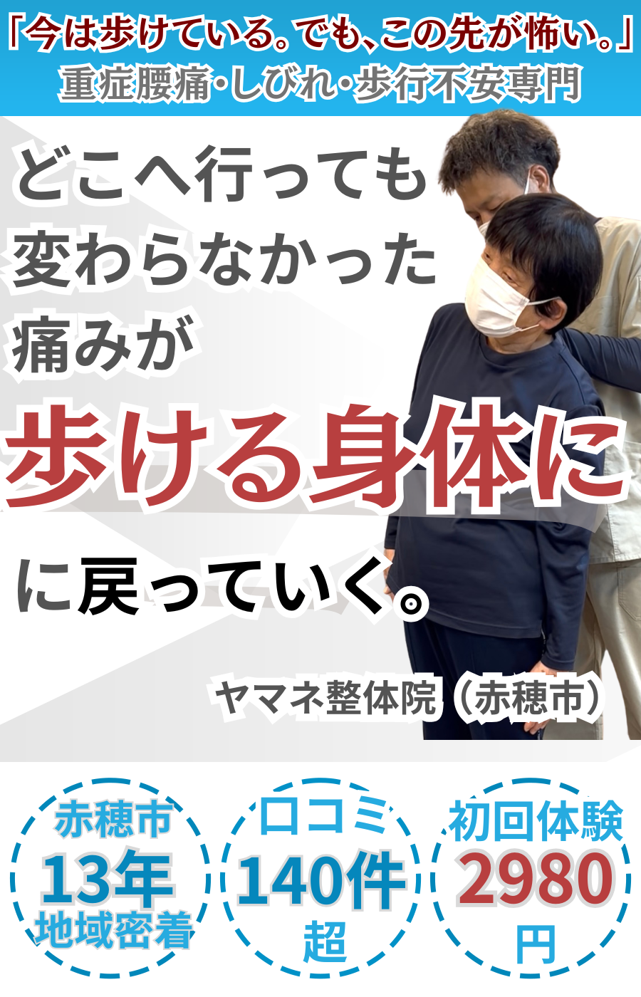 「歩ける未来のために、初回だけでもお気軽にご相談ください」