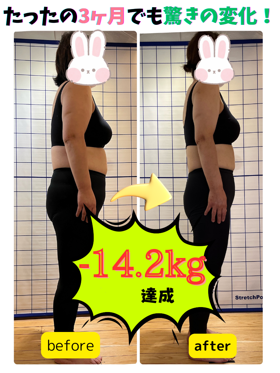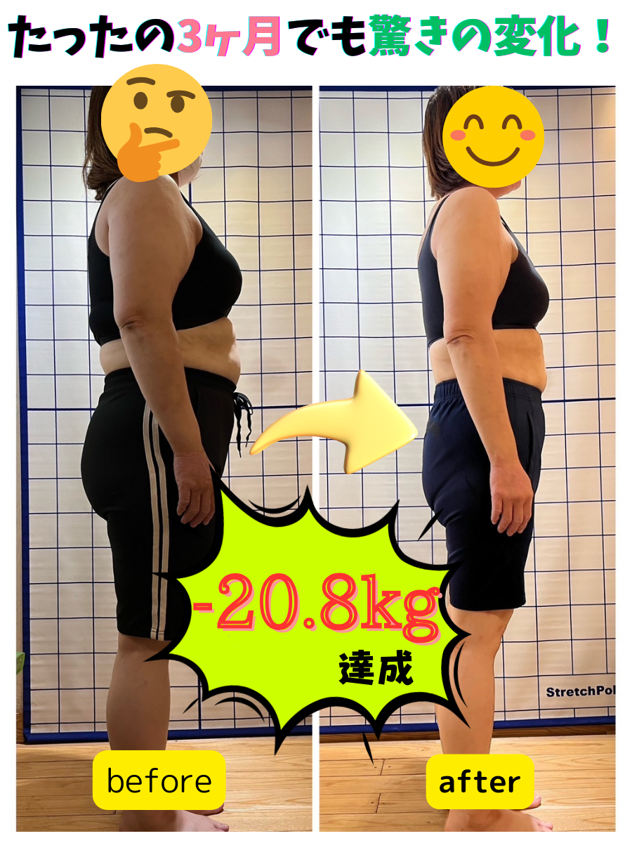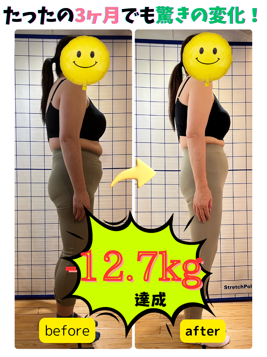 一緒に模索しながらコツコツ出来ることから実践してき見事に3ヶ月−11.7kg達成できました。非常に喜んでくれ、私もとっても嬉しくなりました。