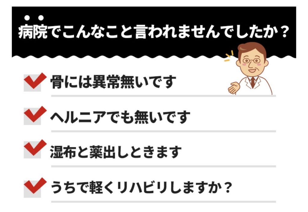 • レントゲンで『異常なし』痛み止めと湿布だしとくと言われたが治らない