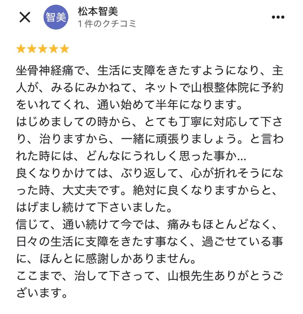 楽な姿勢がないほどの坐骨神経痛が改善!